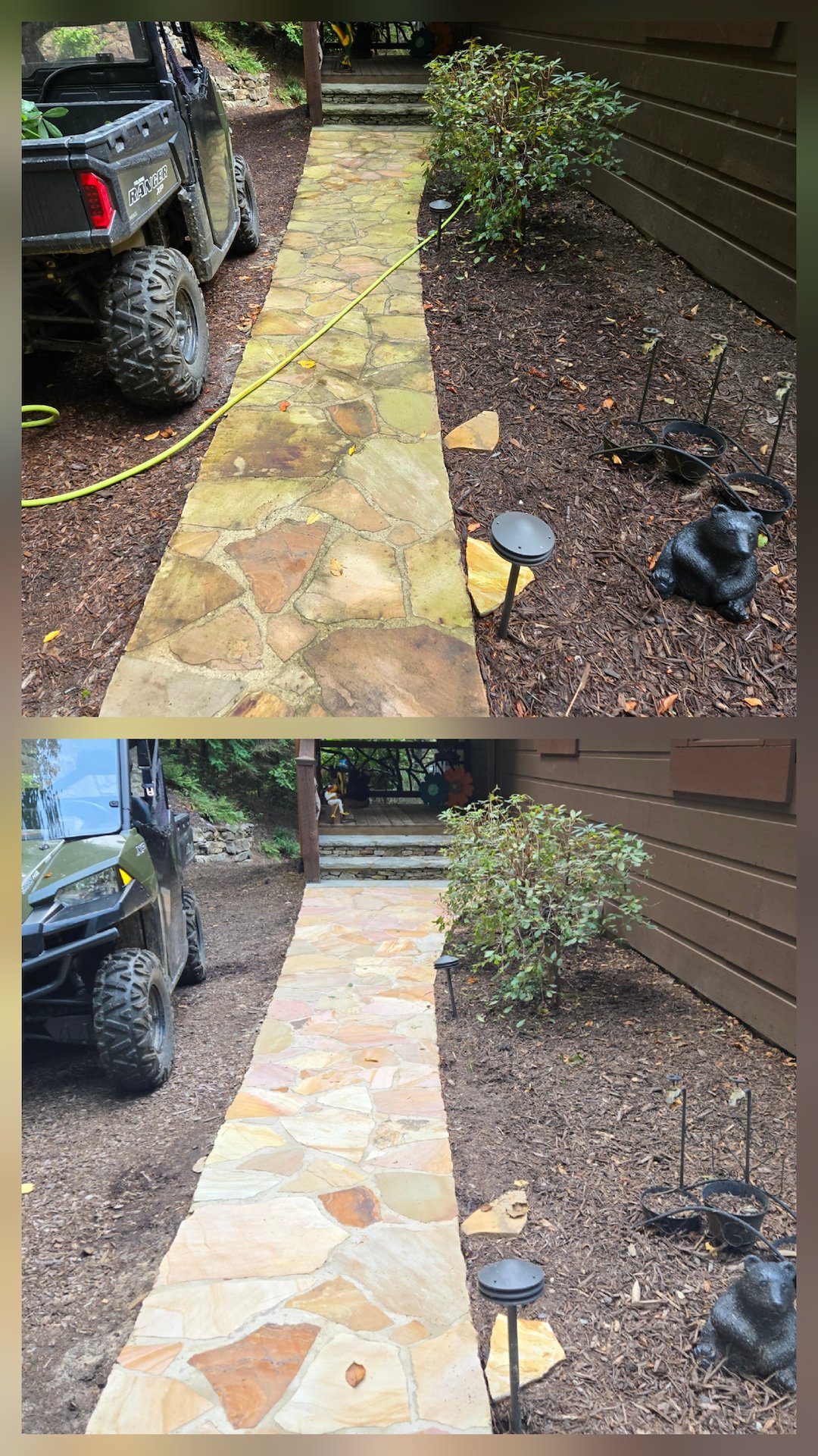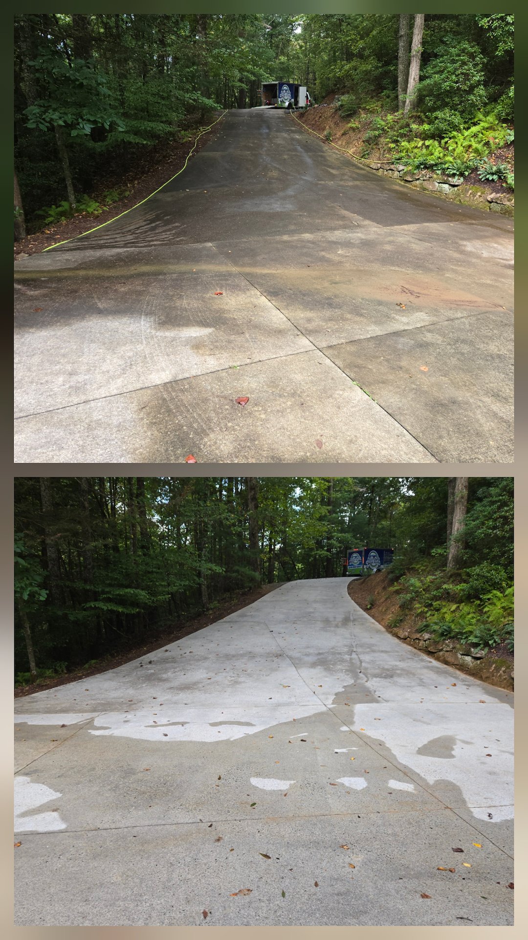 The owners of this mountain retreat in Dahlonega, GA, requested our driveway, deck, and house washing services in preparation for an upcoming event. They expressed hope that I could restore it to its original condition, as it had been several years since the last cleaning. I told them I would do everything I could to make that happen.
