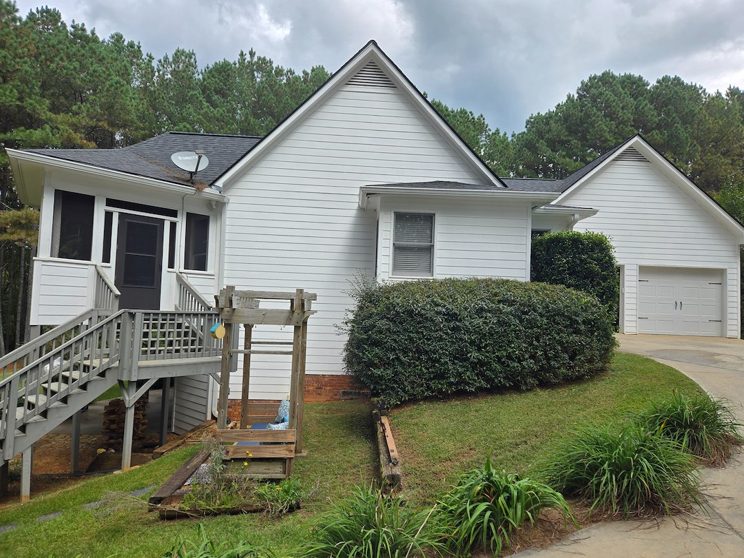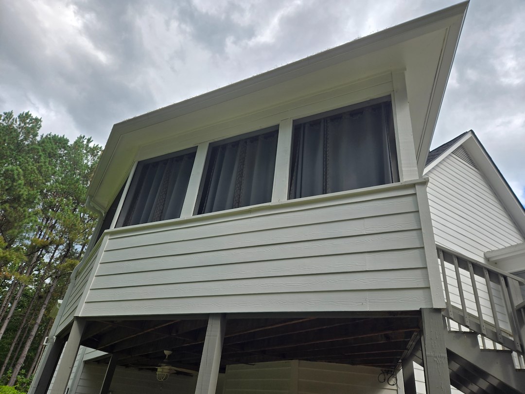 The homeowners of this house in Dahlonega, GA, requested our house washing service and deck cleaning services. This home had not been washed in a few years, so organic growth had begun to accumulate on the exterior surfaces. There were also red clay stains near the ground.