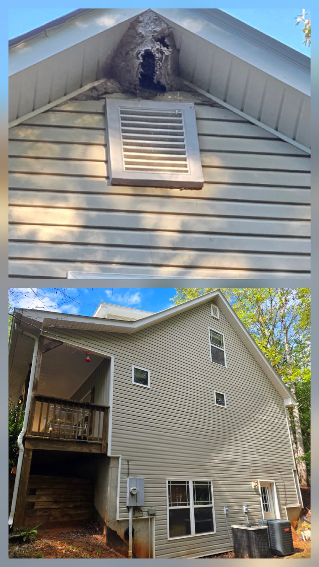 The owners of the vacation home in Cleveland, GA, needed to have the house, roof, and deck soft washed in preparation for the upcoming holiday season. The metal roof had never been cleaned and had a thick layer of algae growing on it. The siding and gutters were also covered in algae.