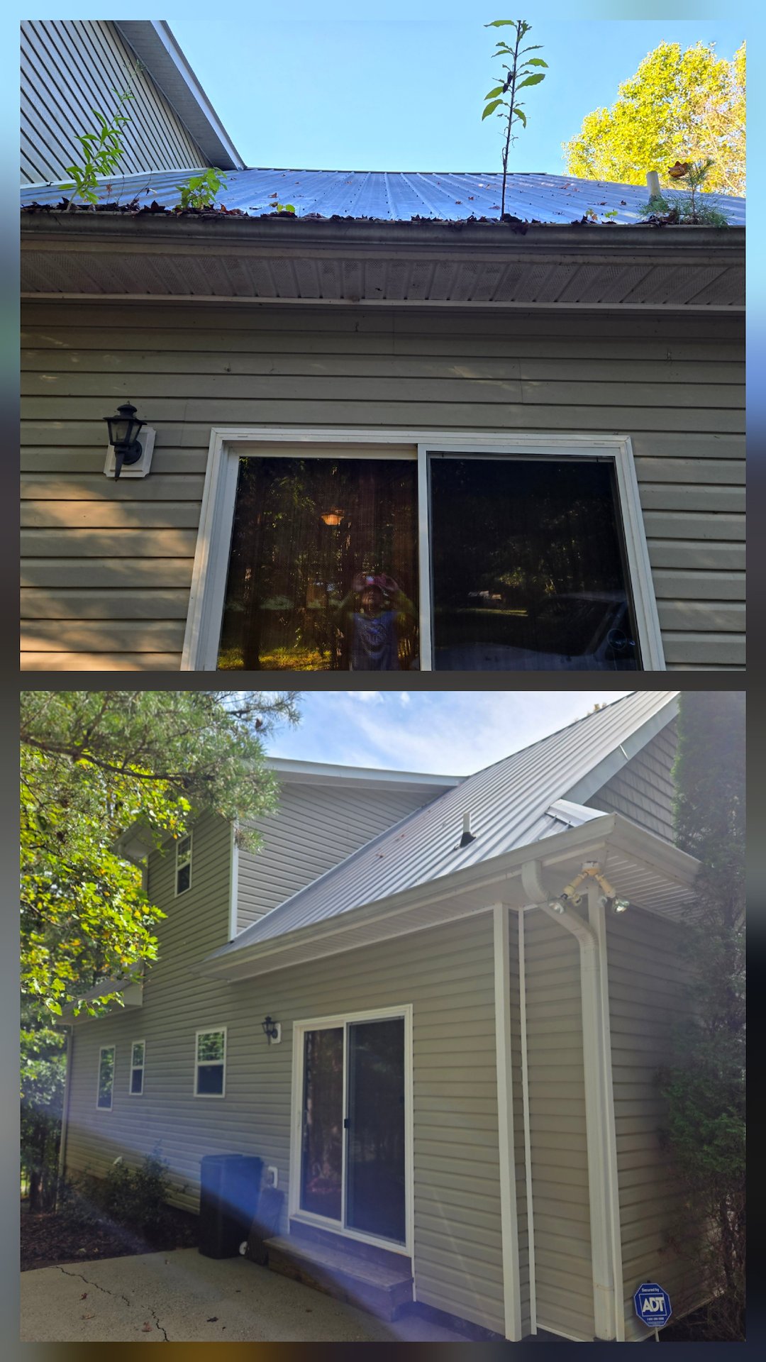 The metal roof was soft washed both from a ladder and the ground. Once the roof was cleaned, I turned my attention to the siding, deck and gutters, ensuring a thorough wash to restore their original appearance. The homeowners let me know their house had never been this clean, and they were excited to spend time with their family and friends in their revitalized home.